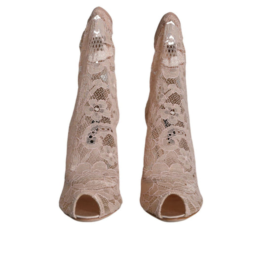 Dolce & Gabbana Beige Stretch Taormina Lace Boots Shoes