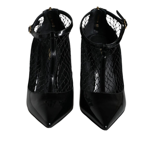 Dolce & Gabbana Black Mesh Patent Leather Heels Pumps Shoes