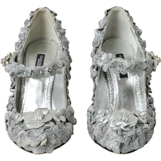 حذاء ماري جين من دولتشي آند غابانا فضي اللون مزين بالكريستال