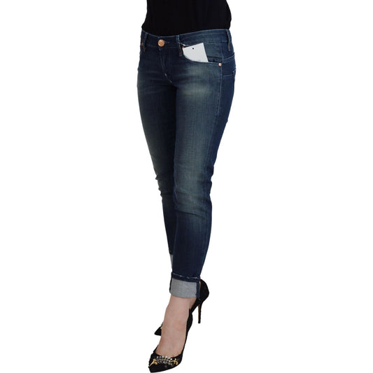 Acht Blue Cotton Stretch Hem Slim Fit Women Denim Trouser