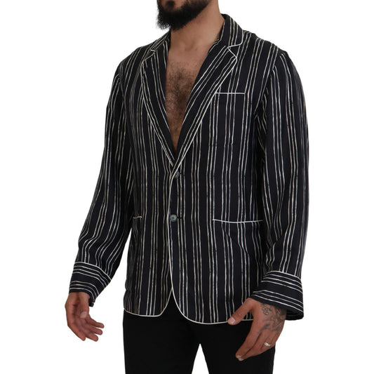 Dolce & Gabbana Blue Striped Wool Slim Fit Blazer Jacket