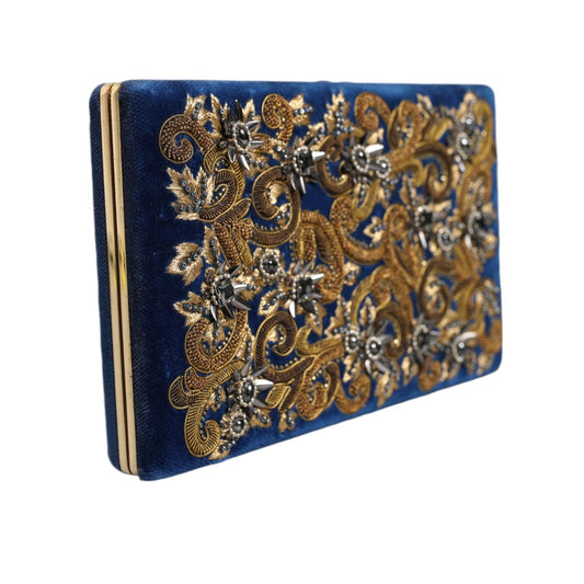 Dolce & Gabbana Blue Velvet Gold Frame Clutch Evening Party Purse Bag