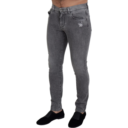 Dolce & Gabbana Grey Washed Cotton Slim Fit Men Denim Jeans