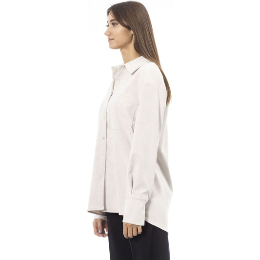 AGLINI White Cotton Collared Long Sleeves Ruffle Top Shirt