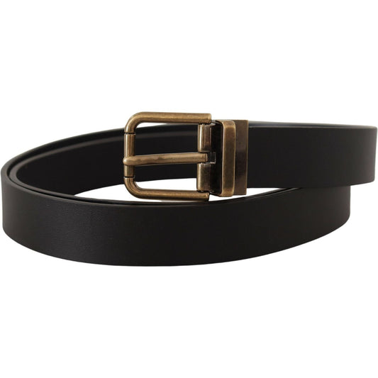 Dolce & Gabbana Black Leather Brass Metal Grain Buckle Classic Belt