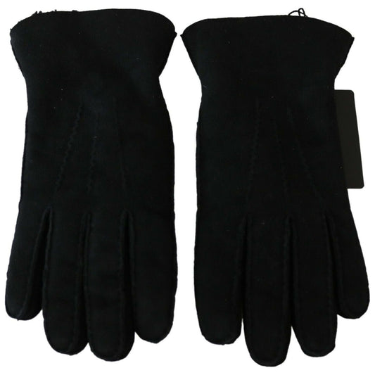 Dolce & Gabbana Black Leather Motorcycle Biker Mitten Gloves