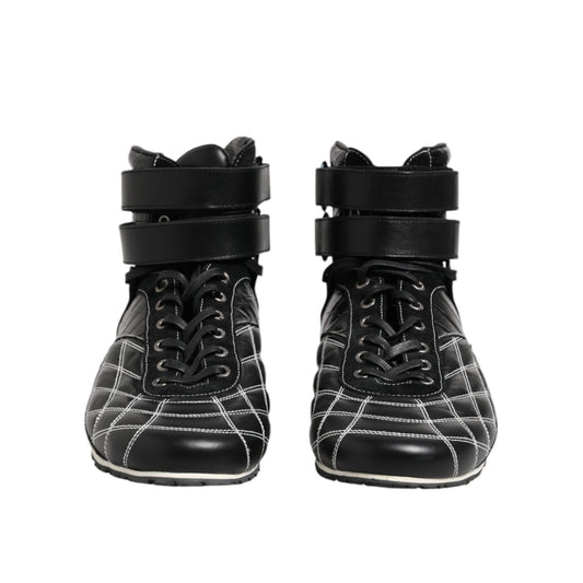 Dolce & Gabbana Black Quilted Leather Lace Up Sneakers Shoes