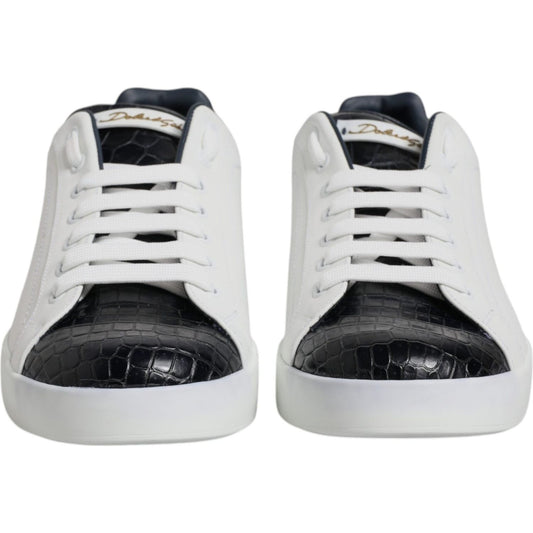 Dolce & Gabbana White Black Leather Portofino Sneaker Shoes
