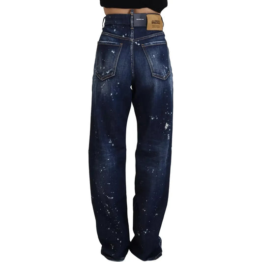 Dsquared² Blue Distressed High Waist Straight Denim Jeans