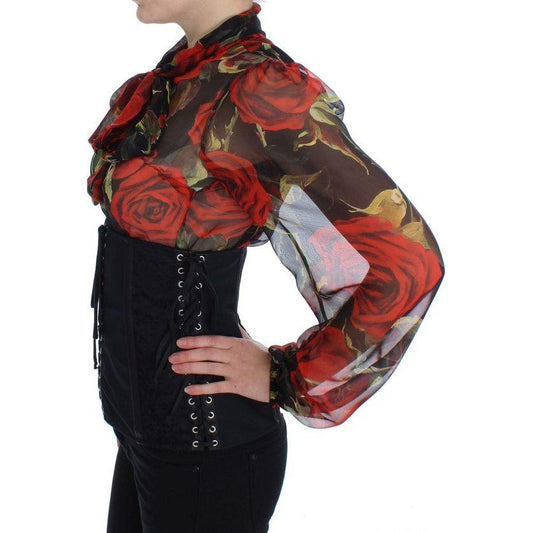 优雅黑色花卉锦缎紧身胸衣腰带