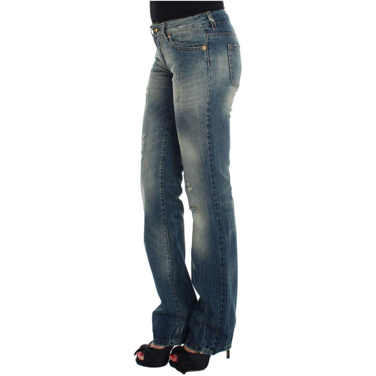 优雅喇叭形蓝色牛仔裤
