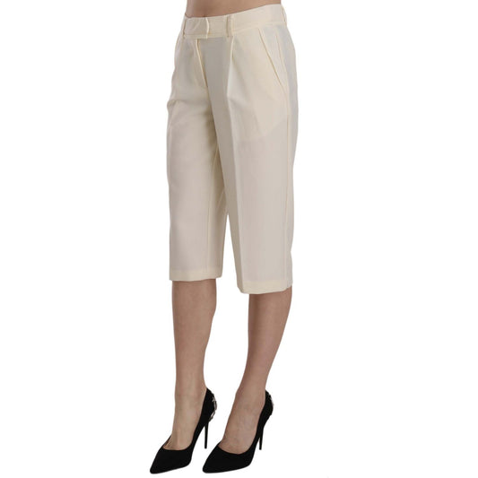 奶油色优雅直筒七分裤